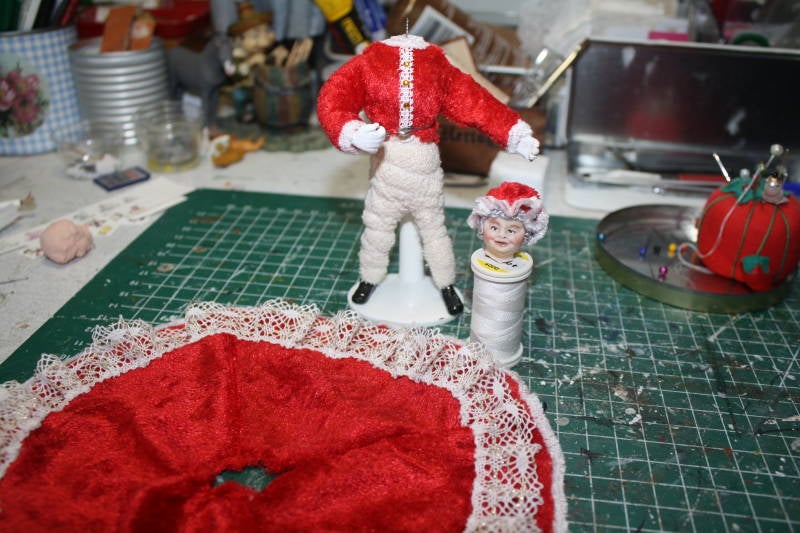 Het frame voor het lijf heb ik gemaakt van chenilledraad, dat heb ik omwikkeld met reepjes schuimrubber (dat vindt je tussen de druiven in de supermarkt) en daar heb ik badstof verbandgaas omheen gewikkeld.
