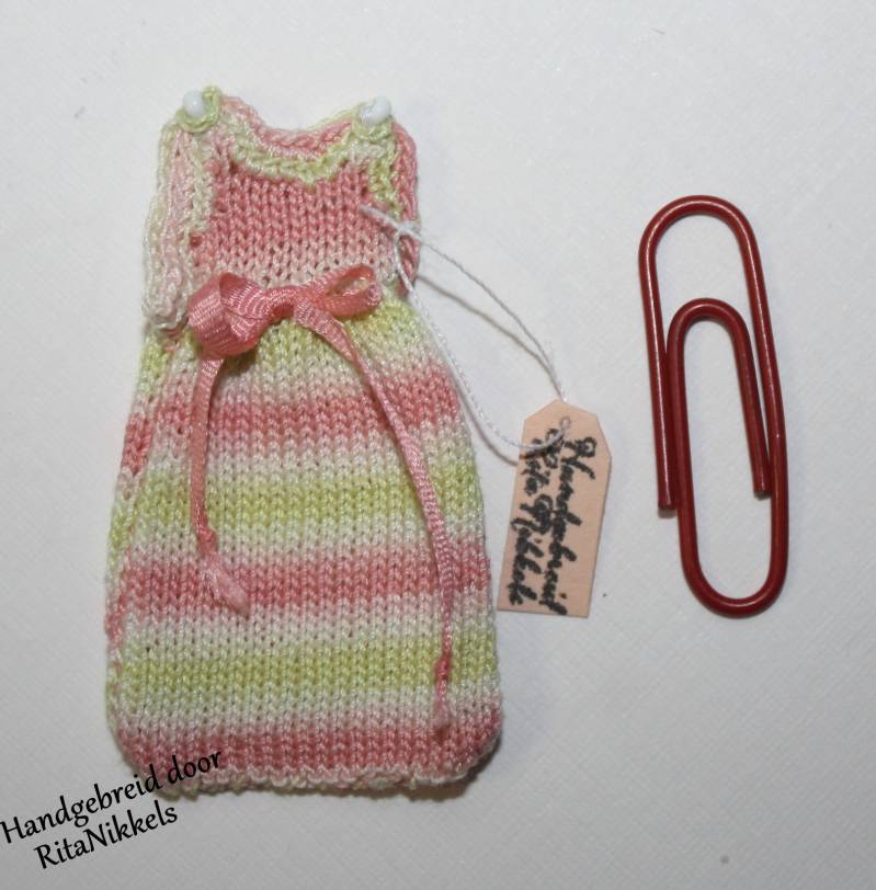 Handgebreide trappelzak met bovensluiting en zijden strikje