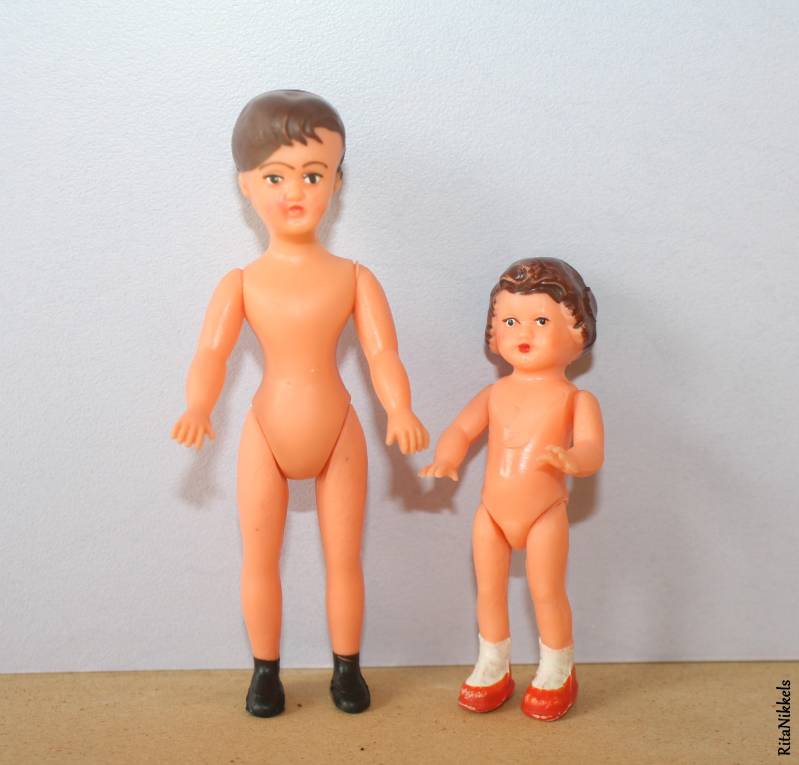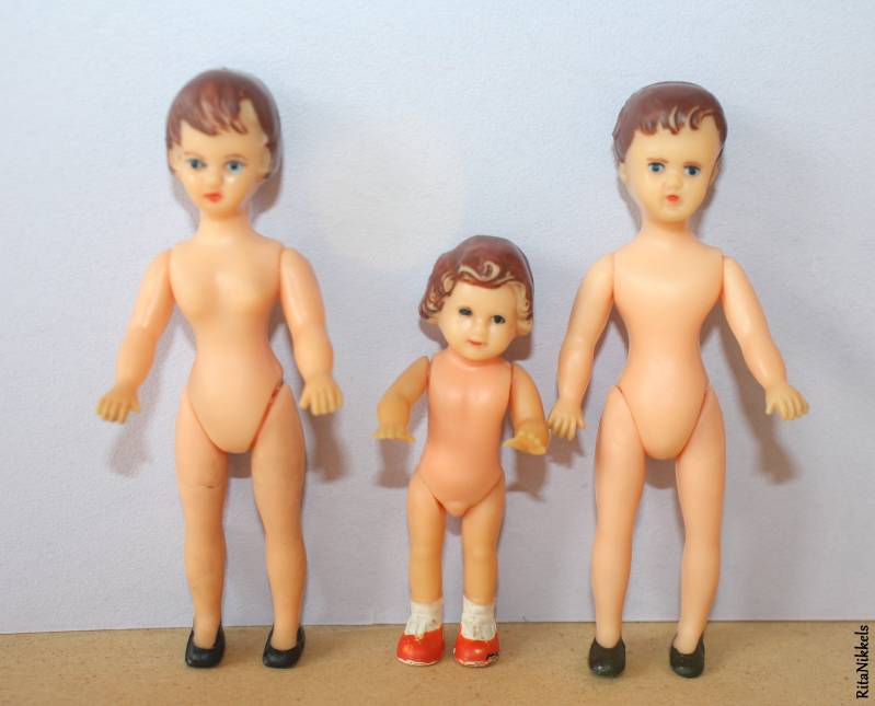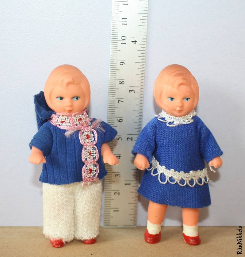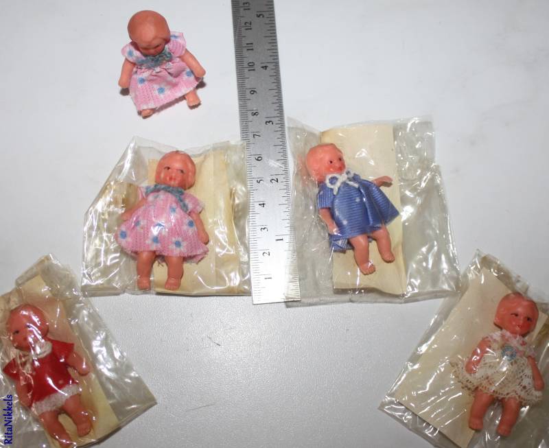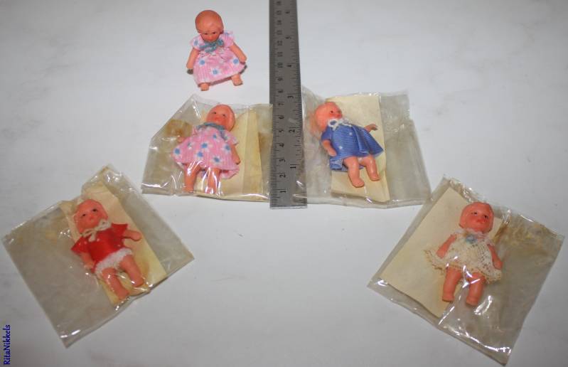 Vintage rubberen popjes (5,5 cm) in originele verpakking