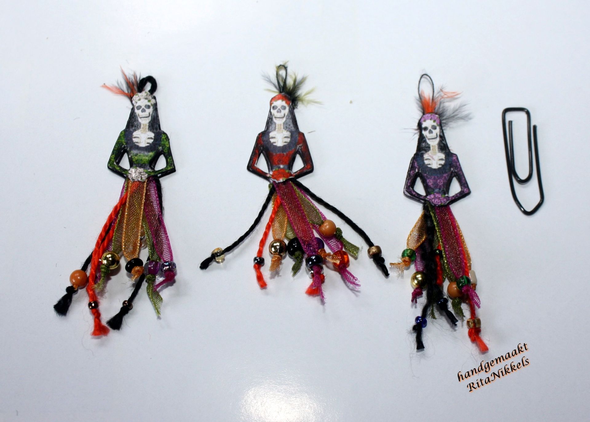 Groepje kaarsen + glazenbol met vlinder òf silhouet van een vleermuis.
