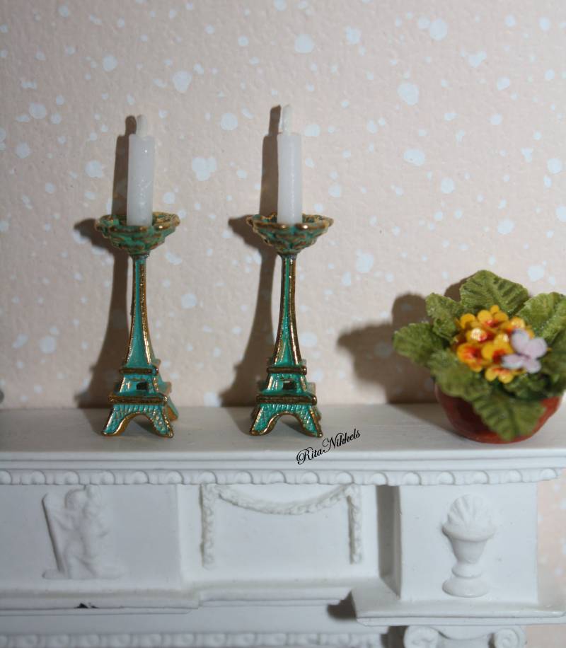 Vintage Aqua kaarsenkandelaar met echt kaarsje