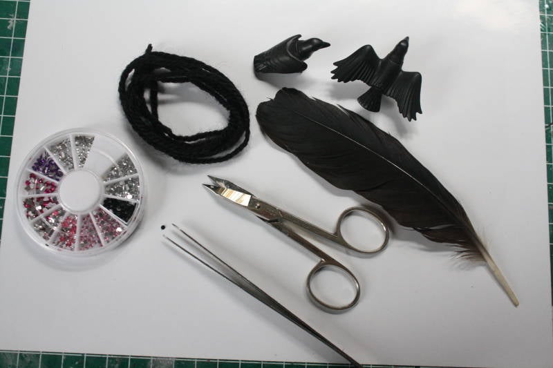 Zwarte halfronde steentjes (nailart) of kleine kraaltjes voor de oogjes.